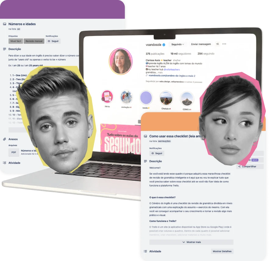 Chega de diálogos de aeroporto e frases engessadas. Descubra como aprender inglês com temas reais e atuais: de cantores a invenções, de histórias inspiradoras a empresas que mudaram o mundo.