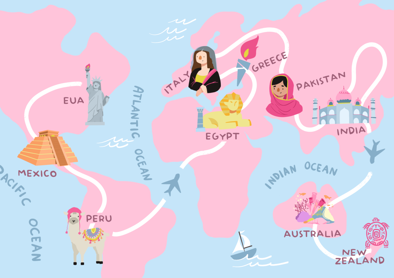 Passe o mouse nos destinos do mapa ao lado e saiba mais sobre a nossa jornada de exploração